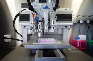 Verschiedene Unternehmen bieten 3D-Bioprinter und Biomaterialien zum Verkauf an, mit denen bereits heute einfache Gewebe quasi serienmässig produziert werden können. Eines dieser Unternehmen ist regenHU aus Villaz-St.-Pierre aus der Westschweiz. RegenHU arbeitet bei der Entwicklung seiner Geräte und Materialien eng mit den Forschern der Zürcher Hochschule für Angewandte Wissenschaften (ZHAW) zusammen. «Bioprinting ist ein spannendes, interdisziplinäres Forschungsgebiet, bei dem Ingenieure, Mediziner, Biologen, Chemiker und Materialwissenschaftler Hand in Hand arbeiten», erklärt Markus Rimann, Gruppenleiter 3D Tissue and Biofabrication im Institut für Chemie und Biotechnologie der ZHAW. «Mein Interesse ist es, künstliches Gewebe herzustellen, und dabei möglichst nahe an die biologische Funktionalität von natürlichem Gewebe heran zu kommen.»