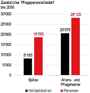Mehr Spitex-Leistungen könnten zwar das Kostenwachstum in der Alterspflege bremsen, würden jedoch den Ausbildungsbedarf in der Schweiz und Rekrutierungen aus dem Ausland massiv erhöhen. Nebst einer Erhöhung des Beschäftigungsgrads in Spitex-Organisationen braucht es eine Optimierung der gesamten Pflegekette.