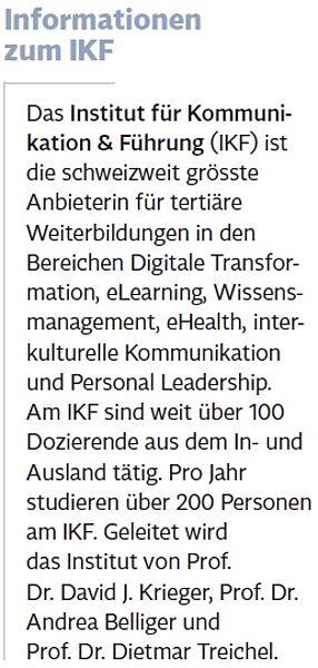 Prof. Dr. Andrea Belliger, exec. MBA, ist Prorektorin an der PH Luzern und leitet das private Forschungsund Weiterbildungsinstitut IKF. Sie forscht, lehrt und berät Organisationen zu Fragen von Trends und Veränderungen im gesellschaftlichen Kommunikationsverhalten und zu digitaler Transformation in unterschiedlichen Branchen und ist als Verwaltungsrätin in Schweizer Unternehmen tätig.