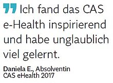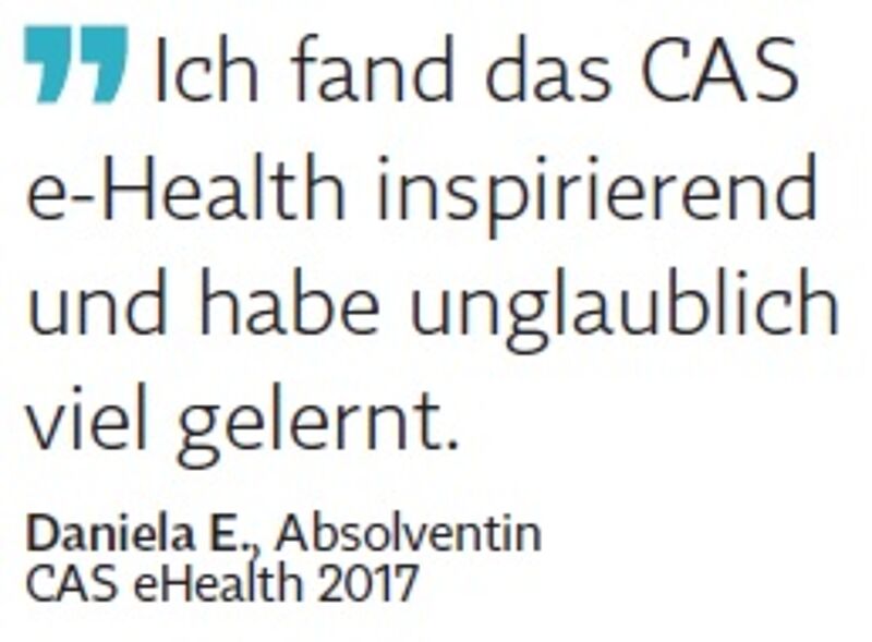 Ausgehend von einer Perspektive, in welcher der Mensch im Mittelpunkt steht, orientiert sich unsere berufsbegleitende Weiterbildung an einem breiten, das ganze Leben begleitenden Konzept von Health & Care. Der CAS eHealth – Gesundheit digital basiert auf einem umfassenden bottom-up-Verständnis von eHealth, in dem die Konsumenten und Adressaten von Health & Care als Hauptakteure des Gesundheitssystems betrachtet werden, die einen entscheidenden Einfluss auf künftige Entwicklungen, Märkte und Prozesse haben.