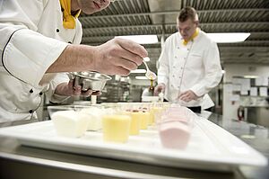 Als zeitaufwändig erwies sich die Einarbeitungszeit der Mitarbeiter, wobei Stalder auf die tatkräftige Unterstützung von Hugentobler zählen konnte. «Wir befinden uns auf dem richtigen Weg», resümiert Stalder. Der Produktions-Output lässt sich mit der gegenwärtigen Küchenmannschaft kaum mehr optimieren. Beim nächst grösseren neuen Auftrag muss Manpower aufgestockt werden. «Mit einer zusätzlichen halben Stelle könnten wir beispielsweise täglich nochmals 300 zusätzliche Menüs herstellen», rechnet Stalder vor. Trotz der neuen Ausrichtung von Domicil Cuisine betont er: «Wir sind eine Handwerksküche und kein Industrie-Betrieb. Wir können individuell auf Kundenwünsche eingehen und das soll auch so bleiben!»
