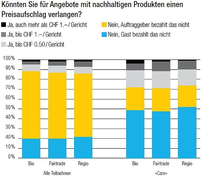 Noch Mitte des letzten Jahrhunderts wurde gut ein Drittel des Haushaltseinkommens für Lebensmittel ausgegeben. Mittlerweile sind es deutlich weniger als 10 Prozent. Ein Preisaufschlag für ein nachhaltiges Angebot von 50 Rappen pro Gericht – so müsste man meinen – wäre locker zu verkraften. Dem widerspricht die Branche gemäss SVG-Umfrage aber deutlich: Gegen 90 Prozent der Betriebe geben an, dass für ein nachhaltiges Gericht kein Preisaufschlag erhoben werden kann. Fast 70 Prozent erklären, dass der Auftraggeber keinen Preisaufschlag erlauben würde. Man darf schon jetzt gespannt sein auf die nächste Durchführung dieser SVG-Umfrage und darauf, wie viel den Befragten und Auftraggebern dann nachhaltige Produkte wert sein werden.