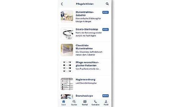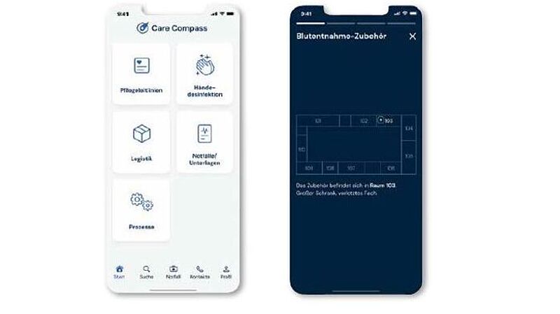 Der Care Compass ist eine App, die Einrichtungen im Gesundheitswesen dabei unterstützt, den Alltag von Pflegekräften zu vereinfachen. Dazu werden innerbetriebliche Abläufe und wichtige Informationen kompakt und in standardisierter Form von Stories (ähnlich wie bei Instagram und im Whatsapp-Status) festgehalten, sodass Stationsabläufe sehr einfach nachzuvollziehen sind. Der Vorteil gegenüber dem bisherigen Einarbeitungsprozess: Neue Mitarbeitende können bei aufkommenden Fragen zu Abläufen oder Prozessen schnell in der App nachschauen, was Zeit spart und ein Gefühl von Sicherheit vermittelt. Alle benötigten Informationen können jederzeit auch offline abgerufen werden und müssen nicht wie bisher in grossen Ringbuchordnern gesucht werden. Wenn beispielsweise die richtige Ansprechpartnerin oder -partner nicht erreichbar ist, können mithilfe des Care Compass die benötigten Informationen direkt abgerufen werden. Der Care Compass wurde in enger Zusammenarbeit mit Pflegekräften entwickelt, daher ist die App genau auf die Herausforderungen und Bedürfnisse im Gesundheitswesen zugeschnitten. Aus der Pflegepraxis ist bekannt, dass es dafür hilfreich ist, Prozesse des Arbeitsalltags visuell festzuhalten.
