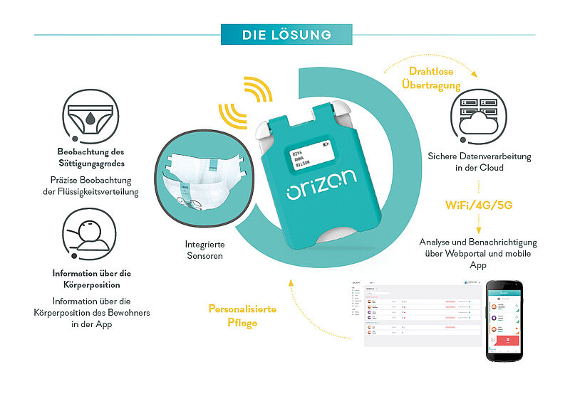 Mit der innovativen und smarten Inkontinenzpflegelösung Orizon soll dem Ganzen entgegengewirkt werden. Die Smartlösung Orizon bietet nicht nur zuverlässigen Schutz, sondern liefert über eine App wichtige Informationen über den Sättigungsgrad wie auch die Körperhaltung. Die unbehaglichen Kontrollen und Störungen fallen dank des intelligenten Inkontinenz-Management-Systems weg. Dies verbessert einerseits das Wohlbefinden des Bewohnenden. Andererseits bleibt den Pflegefachkräften damit auch mehr Zeit für die individuelle und menschliche Interaktionen.