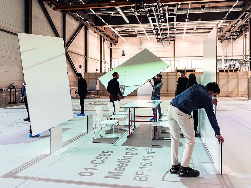 In Nidau steht dafür eine 560 m2 grosse Extended-Reality-Simulationsfläche in einer 2500 m2 grossen Industriehalle zur Verfügung; es ist die grösste Fläche dieser Art in der Schweiz. Grundrisse können auf den Boden projiziert werden, Wände, Türen und Fenster in passender Grösse aus Karton realisiert und die Räume mit medizinischen Geräten, Patientenliegen und weiterem Mobiliar ausgestattet werden. In diesem realitätsgetreuen Umfeld begegnen sich Spitaldirektoren, Planer sowie die zukünftigen Nutzenden – dieser partizipative Ansatz ist für die Experten des SCDH zentral. Dieses gemeinsame Suchen nach optimalen Lösungen hat auch den Leiter Unternehmensentwicklung des Spitals Bülach, Jens Diele, überzeugt. Er berichtet, dass nach dem SCDH-Workshop zu einem geplanten Neubau die Grundrisse überarbeitet worden seien und die Nutzenden viel besser hinter der Planung stünden.