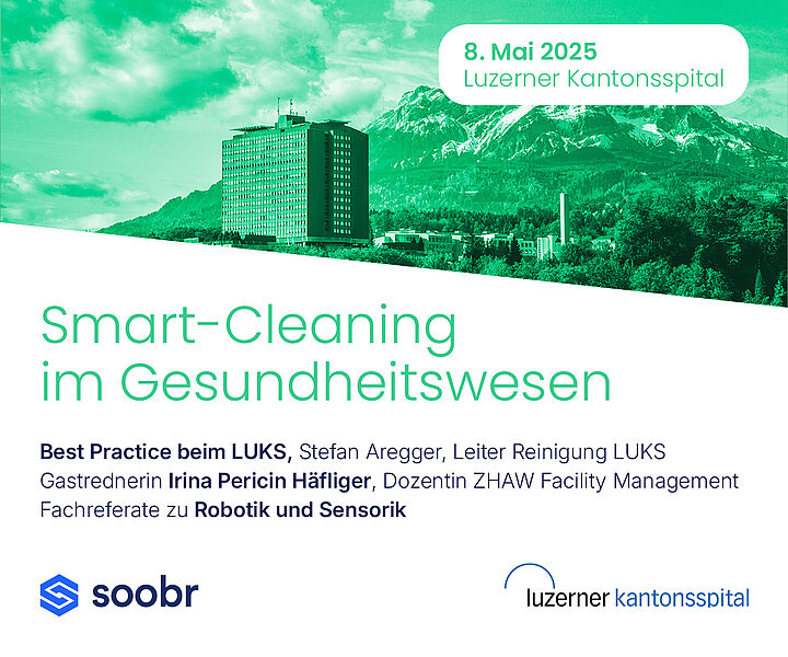Antworten auf diese Fragen liefert der Event „Smart Cleaning im Gesundheitswesen“, der am 8. Mai 2025 im Luzerner Kantonsspital (LUKS) stattfindet. Soobr bringt Expert:innen, Branchenvertreter:innen und Entscheidungsträger:innen zusammen, um über die Zukunft der Krankenhausreinigung zu diskutieren und praxisnahe Lösungen vorzustellen.