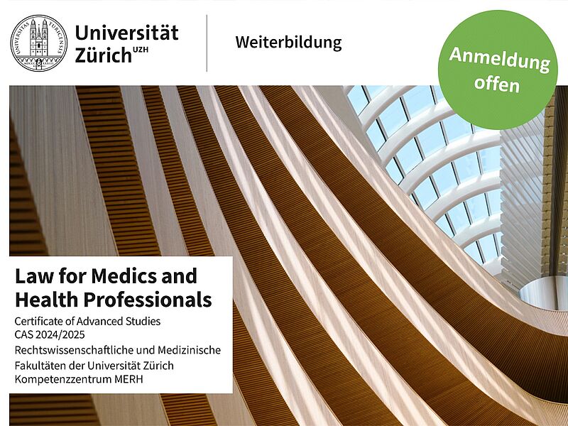 Am 13. September 2023 startet der CAS «Law for Medics and Health Professionals» UZH in die dritte Runde. Der CAS richtet sich in erster Linie an Ärztinnen und Ärzte sowie Gesundheitsfachpersonen, die sich fundierte Grundkenntnisse im Recht aneignen wollen, aber auch an Juristinnen und Juristen, die ihre Kenntnisse auffrischen möchten.