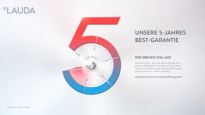 Die Lauda Dr. R. Wobser GmbH & CO. KG führt ab sofort eine fünfjährige Garantie für registrierte Temperiergeräte ein. Mit dem erweiterten Garantieversprechen möchte das Unternehmen die eigene Qualitätsstrategie unterstreichen und langfristige Investitionssicherheit für Anwenderinnen und Anwender bieten – auch in sensiblen Bereichen wie der Medizintechnik, Biotechnologie und pharmazeutischen Forschung.